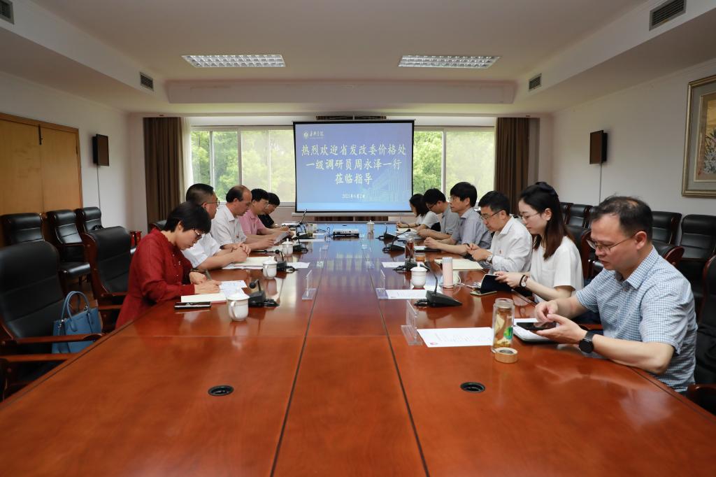 6月2日上午,浙江省发改委一级调研员周永泽一行三人来我校调研。嘉兴学院副校长杨培强、我校副校长袁志明及两校计财处负责人参加。市发改委价格处四级调研员柳文龙等一行三人陪同调研。