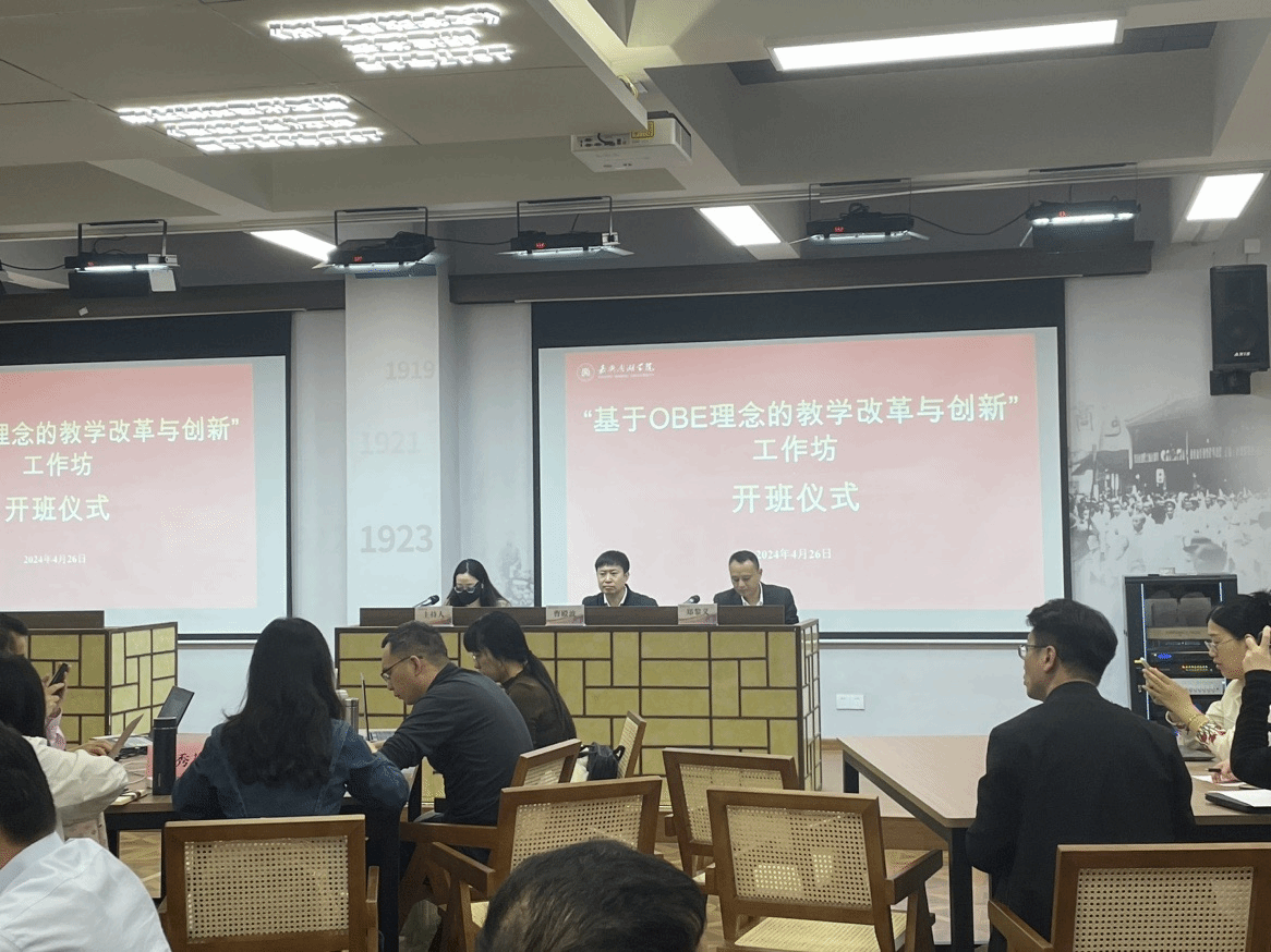 本次培训举行了简短的开班仪式,朱蓉副校长受邀分享了“OBE设计指导师”研修营的学习体会和成果。人事处处长郑黎义作开班动员讲话。
